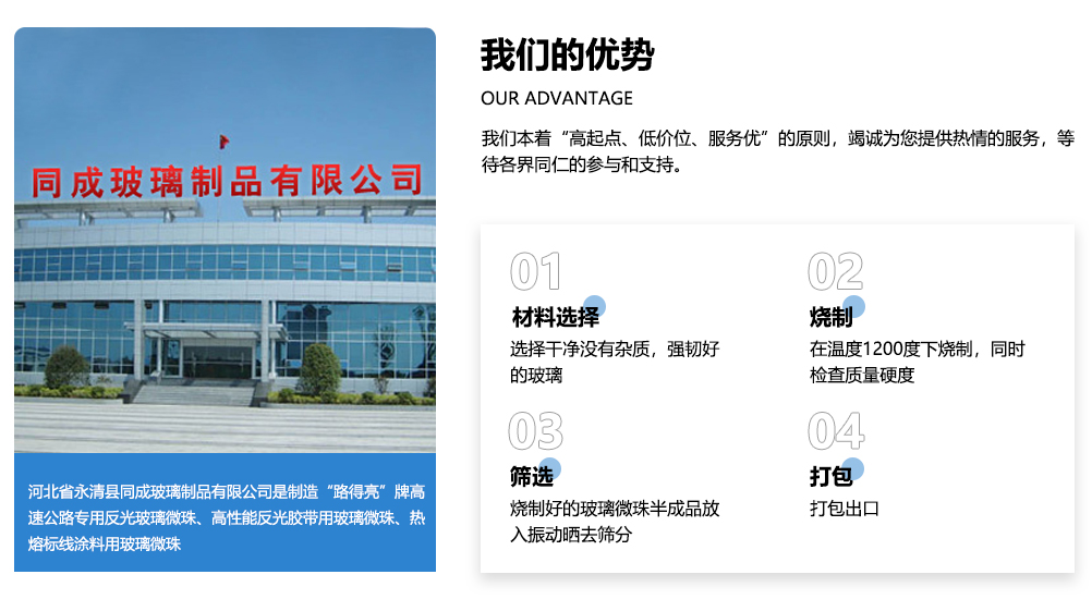 專業(yè)生產玻璃微珠  版權所有:玻璃微珠丨反光玻璃微珠丨噴砂玻璃珠丨道路玻璃微珠-永清縣同成玻璃制品有限公司